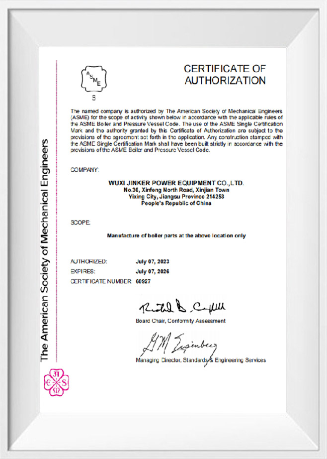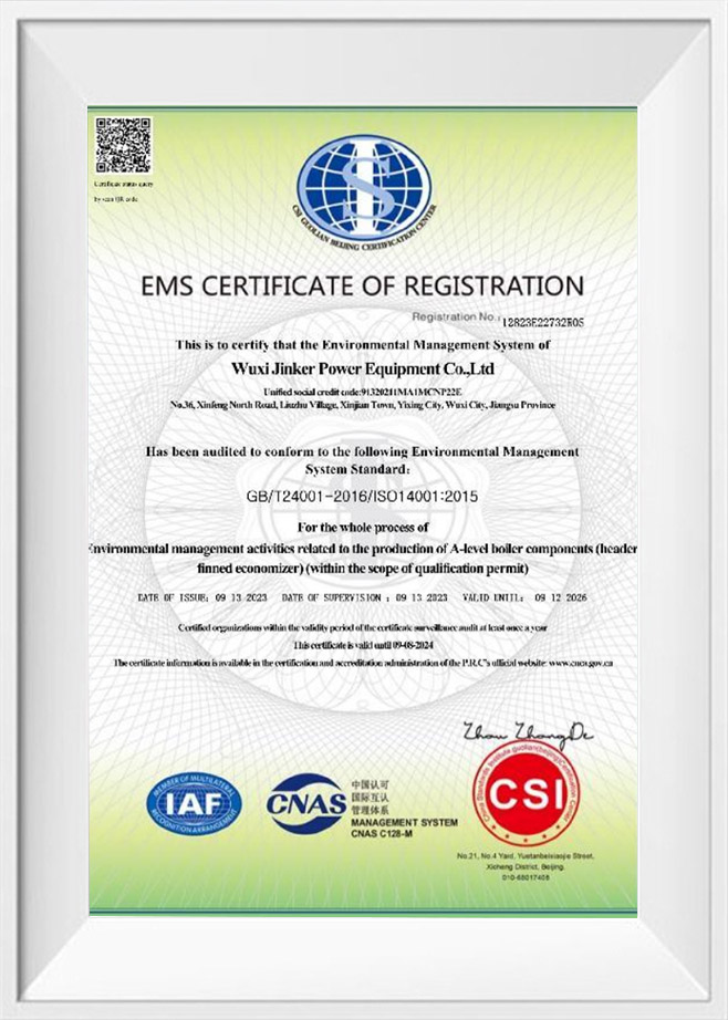 Wuxi Jinker Power Equipment Co., Ltd., située dans le Jiangsu, en Chine, est une entreprise spécialisée dans la fabrication de composants d'énergie thermique de précision. Il possède des qualifications de fabrication complètes pour les composants sous pression et possède la capacité d'application de systèmes d'énergie thermique, au service de clients mondiaux dans les secteurs de l'énergie, de la pétrochimie et de l'industrie lourde.